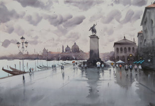 Venice is not just a city, just another tourist place, it is like a mermaid - full of magic and charm and the mystery of water, says Swarup. His profound love for the City of Mirages pulls him to paint Venice again and again. This painting of Riva degli Schiavoni, the Venice waterfront promenade, features the bronze equestrian monument to Victor Emmanuel II, commonly referred to as the Man on the Horse.