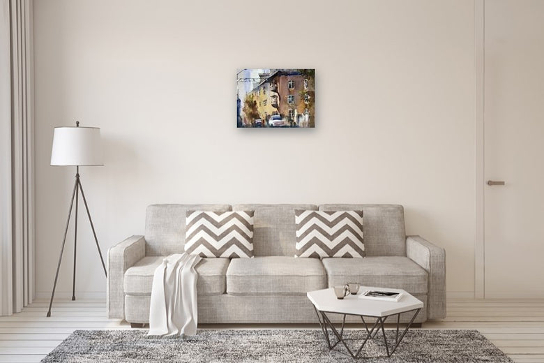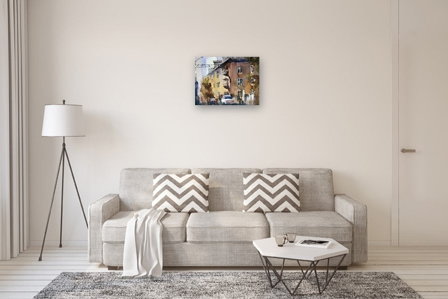 Artist Rashid Kulbatyrov paints an impressionist cityscape depicting a complex of buildings. "The urban landscape is one of the closest topics for me," shares Rashid. Three-story houses personify the rich cultural heritage of Kazakhstan. Built during the early 20th century, these houses still adorn the city streets.
